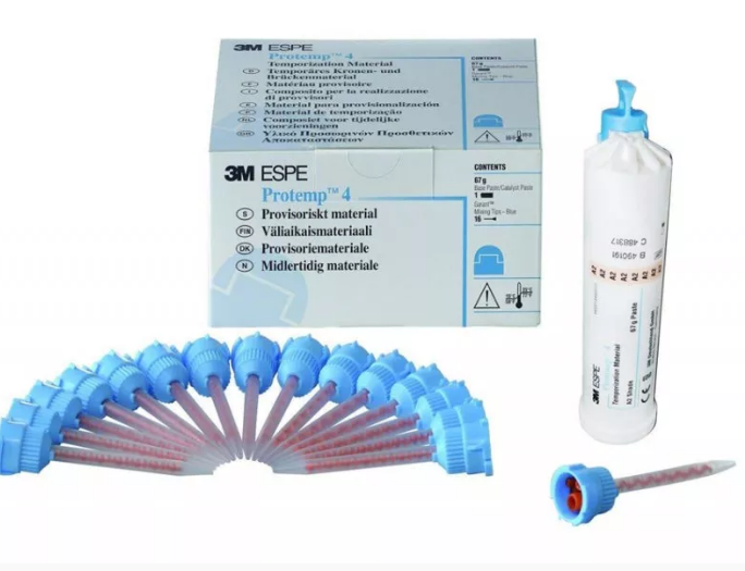 - Protemp 4 Матеріал для виготовлення тимчасових конструкцій - це перевірена якість та легкість роботи Protemp 3 Garant, а також ще зручніша та швидша процедура виготовлення тимчасових реставрацій та вдосконалені характеристики матеріалу. 5 різних відтінків матеріалу Protemp 4 — чудовий вибір для виготовлення міцних тимчасових конструкцій з відмінними естетичними властивостями. Спростити процедуру та підвищити її гігієнічність Ви можете за рахунок автоматичного змішування та дозування за допомогою диспенсера 3M ESPE Garant.